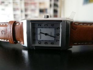 Bracelet : Cuir autruche marron avec boucle déployante Jaeger LeCoultre