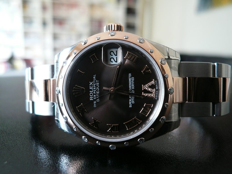 Bracelet :Or rose et acier avec boucle déployante Rolex Boîtier : Or rose et acier Mouvement : Automatique Cadran : Marron Diamètre : 31 mm Année : 2013
