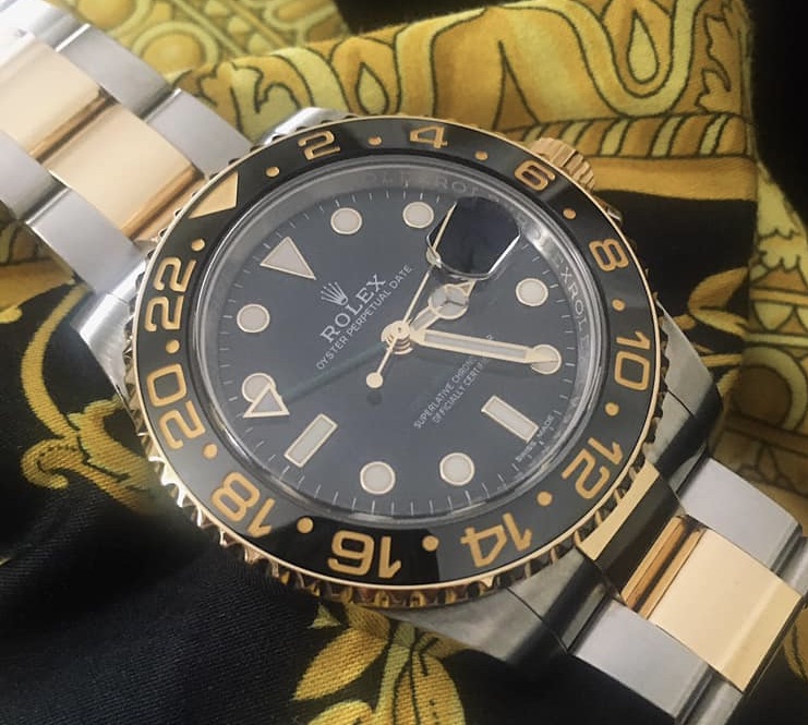 Rolex GMT-Master II, Or et Acier, Lunette Noire