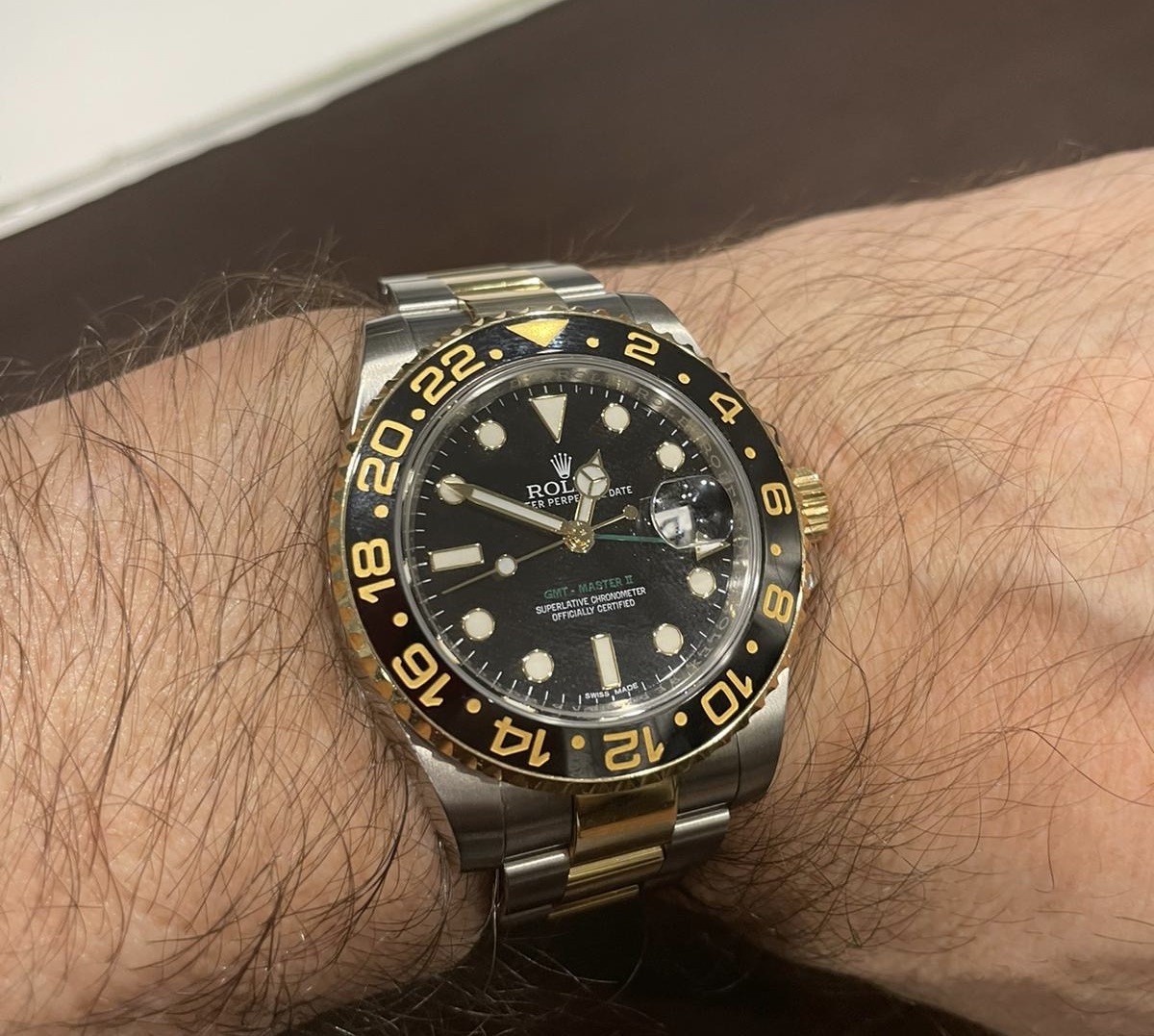 Rolex GMT-Master II, Or et Acier, Lunette Noire